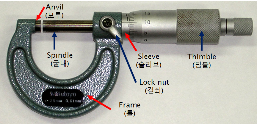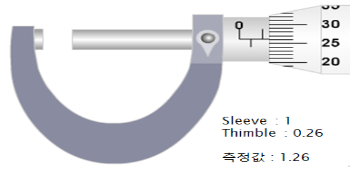 - Sleeve의 눈금은 0.5mm, Thimble의 눈금은 0.01mm 간격