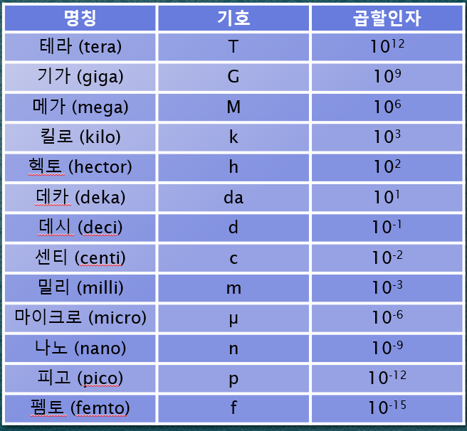 국제단위계 (international system of units [SI])에서 각 단위의 크기를 쉽게 나타내기 위해