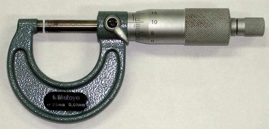 마이크로미터 (Micrometer)는 나사의 원리를 이용하여 길이를 정밀하게 측정하는 기구.