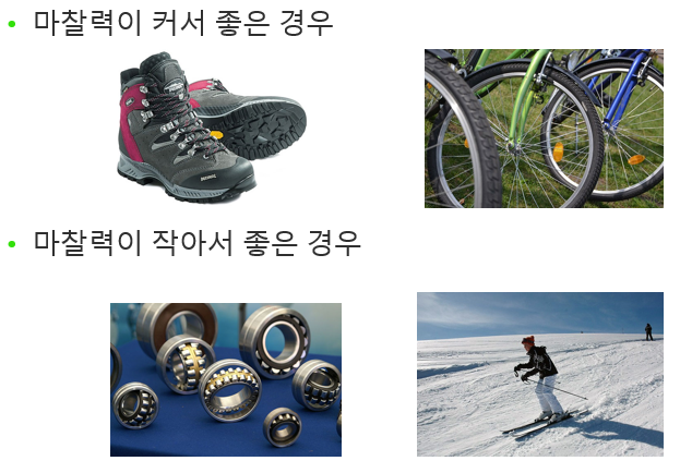 크게 정지 마찰력과 운동 마찰력으로 구분된다.