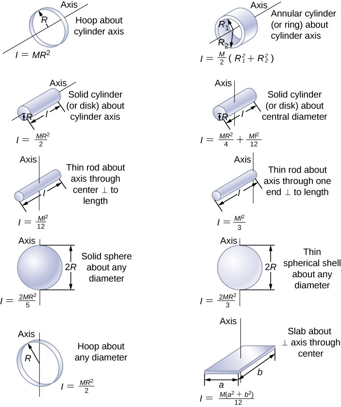 물체의 모양에 따라 관성모멘트의 값은 다양해진다.