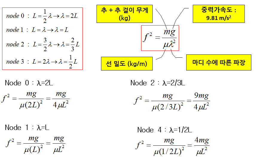 4. 진동수를 바꾸어 가며 마디(node)를 0,1,2,3 바꾸어 가며 측정