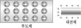 - 부도체는 자유 전자가 없으나 대전체를 가까이하면 원자나 전자의 배치가 변해서 분자들이 극성을 띠고 배열한다.