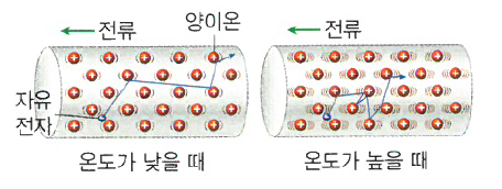 - 도체의 저항은 온도가 높아질수록 커진다.