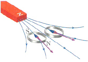 - 자석 주위에 나침반을 높으면 나침반 자침이 자기력을 받아 일정한 방향으로 배열된다.